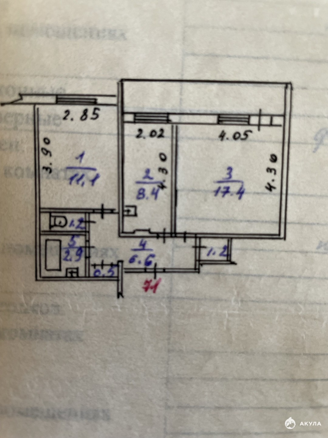 2-х комнатная квартира в южном, район Пентагона, чистый косметический ремонт, санузел раздельный, 3 этаж. Один собственник, пройдет по ипотеке.